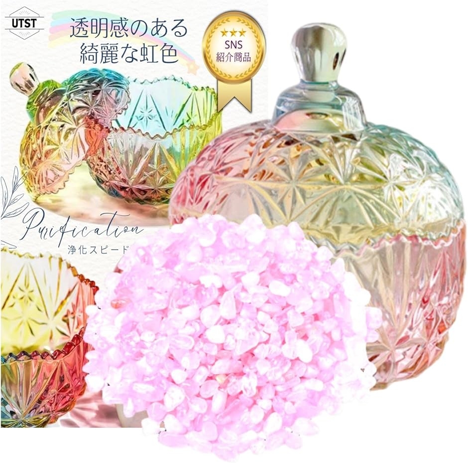 ガラス浄化皿の虹色とさざれ石200gのセットです。