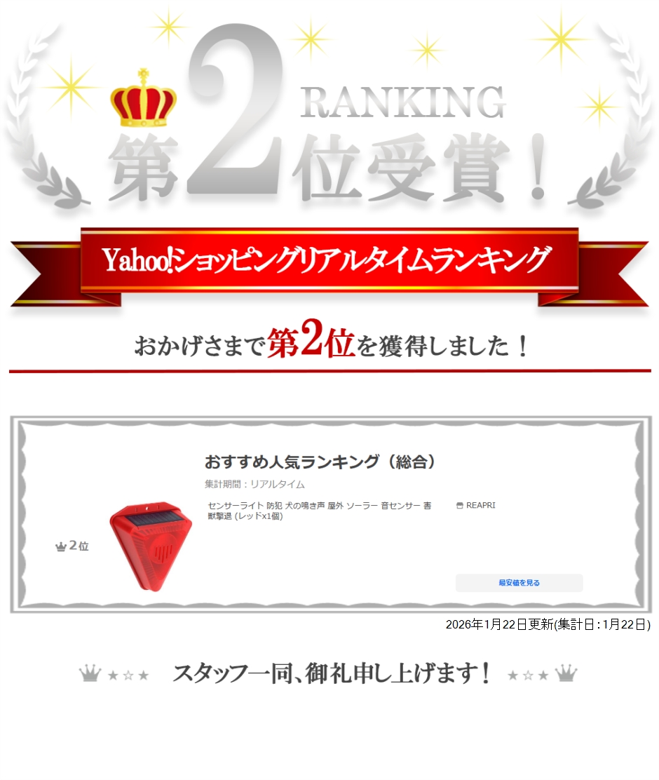 | 商品名 | センサーライト 防犯 犬の鳴き声 屋外 ソーラー 音センサー 害獣撃退 |