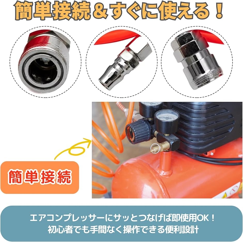 「簡単接続で手間いらず」 エアコンプレッサーに接続するだけで、すぐに使用可能。