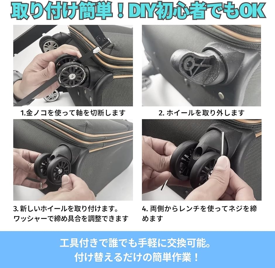 大切な旅行や出張を快適にするために、ぜひこの交換用ホイールをお試しください。