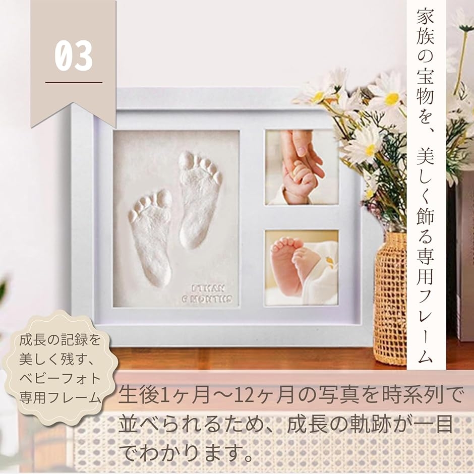 「成長の記録を美しく残す、ベビーフォト専用フレーム」赤ちゃんの“はじめて”を大切に飾れるデザイン。