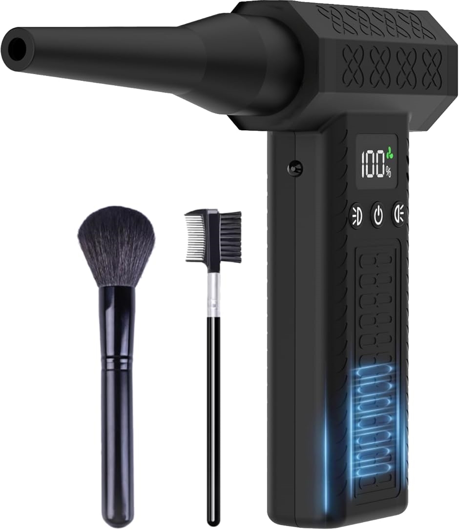 商品名 | 300000rpm電動エアダスター 3段風量調整 世界トップレベル 超強力 最大風速120m/s 小型 洗車ブロワー 2個LEDライト付き LCDディスプレイ搭載 急速充電式 10000mAh 連続200分使用可能 超軽量 パソコン/キーボード/カメラ/洗車/車内/フィギュア/家具掃除 落ち葉の吹き飛ばし |