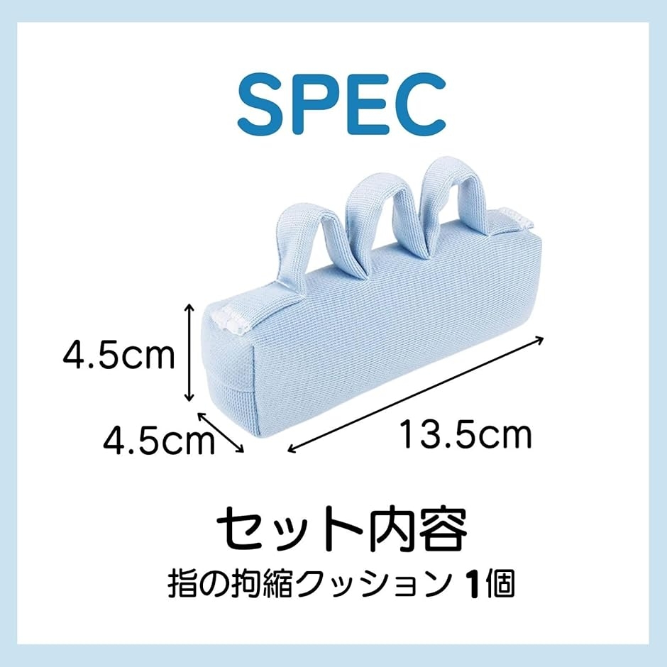 セット内容とサイズ:指の拘縮クッション 1個 長さ13.5cm 奥行き4.5cm 高さ4.5cm