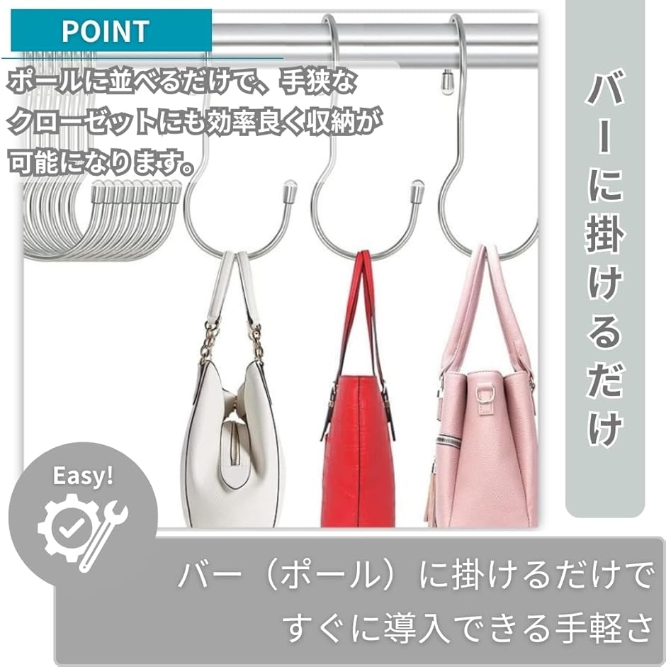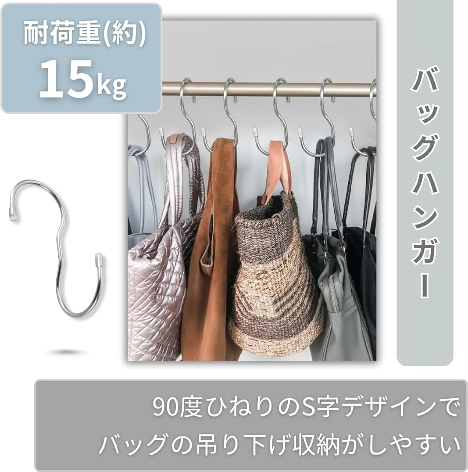 「12個セット」バッグ以外にも帽子・ベルト・スカーフ・ネクタイなど多用途に吊り下げ可能。