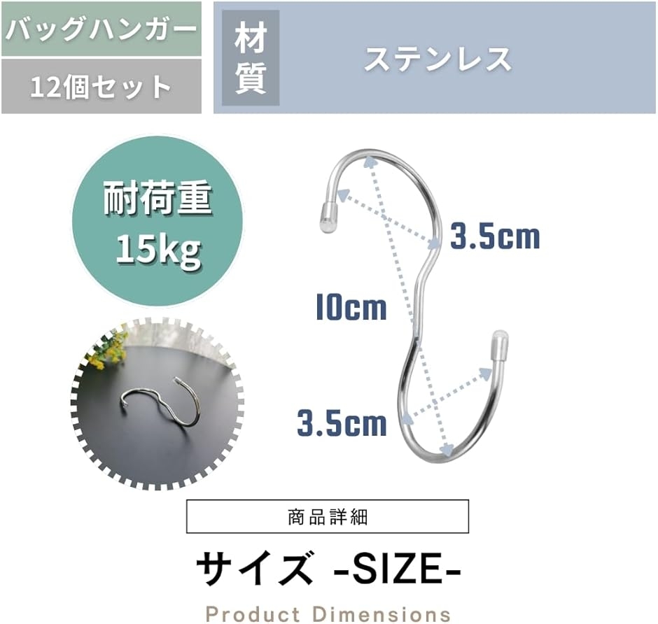 | 商品名 | バッグハンガー s字フック ねじれ かばんかけ 収納 吊り下げ 10cm 12個セット |