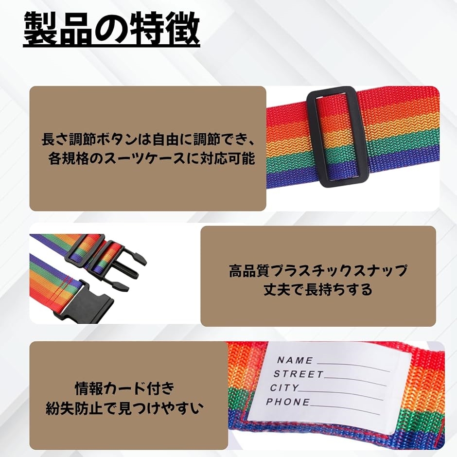 | 商品名 | スーツケース ベルト キャリーケース ベルト ワンタッチ式 荷物梱包バンド 盗難防止 調整可能 荷物崩れ防止 出張 旅行 I型 |