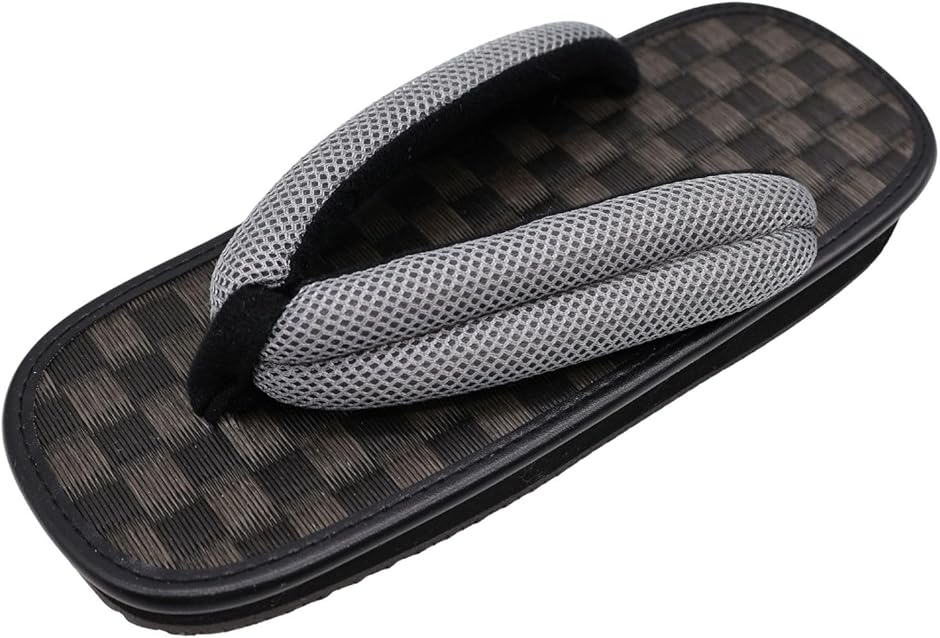 | 商品名 | 雪駄 メンズ 市松 黒畳 グレー メッシュ鼻緒 ゴム底 日本製 |