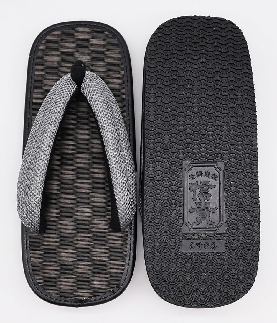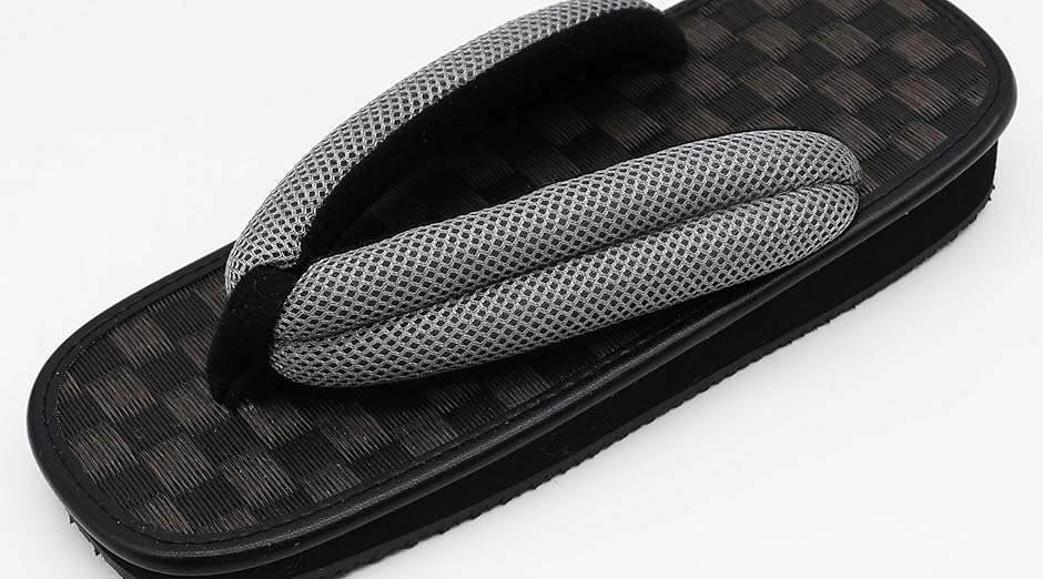 | 商品名 | 雪駄 メンズ 市松 黒畳 グレー メッシュ鼻緒 ゴム底 日本製 |