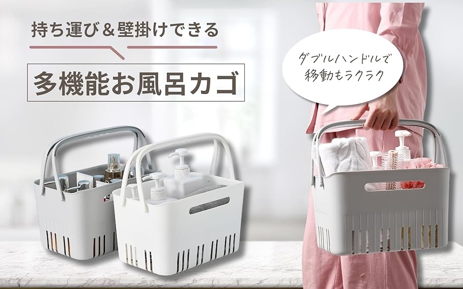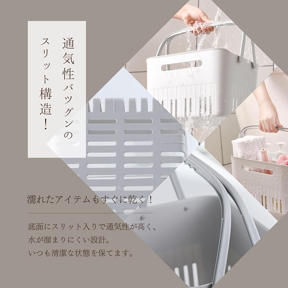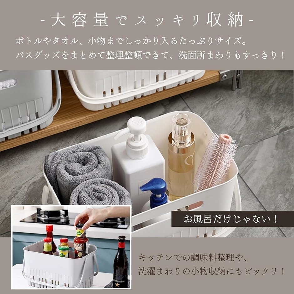 「ジムや銭湯で便利な取っ手付きバスバスケット」 持ち運びしやすい滑り止め付きハンドルで、入浴施設や温泉での使用にぴったりなカゴです。
