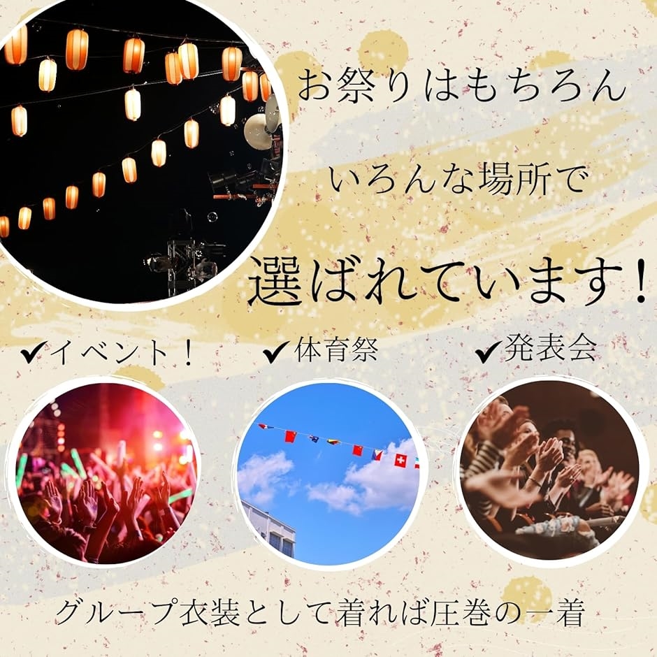 お祭りはもちろん、体育祭、文化祭、発表会の衣装におすすめです。