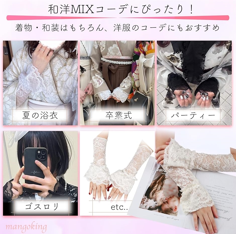 | 商品名 | アームカバー つけ袖 レース 着物 2重フリル 可愛い 浴衣 成人式 卒業式 おしゃれ 振袖 前撮り 袴 |