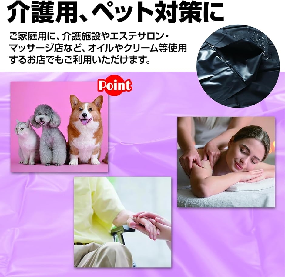 介護用、ペットのおもらし対策にぴったり。ご家庭用はもちろん、エステサロンやマッサージ店など、オイル、クリーム等使用するお店でもご利用いただけます。