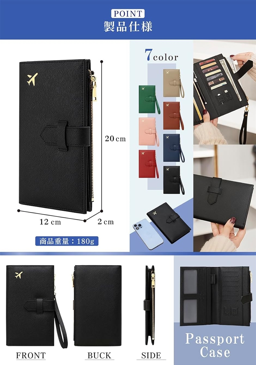 | 商品名 | パスポートケース スキミング防止 薄型 二つ折り パスポートカバー 軽量 ストラップ付き |