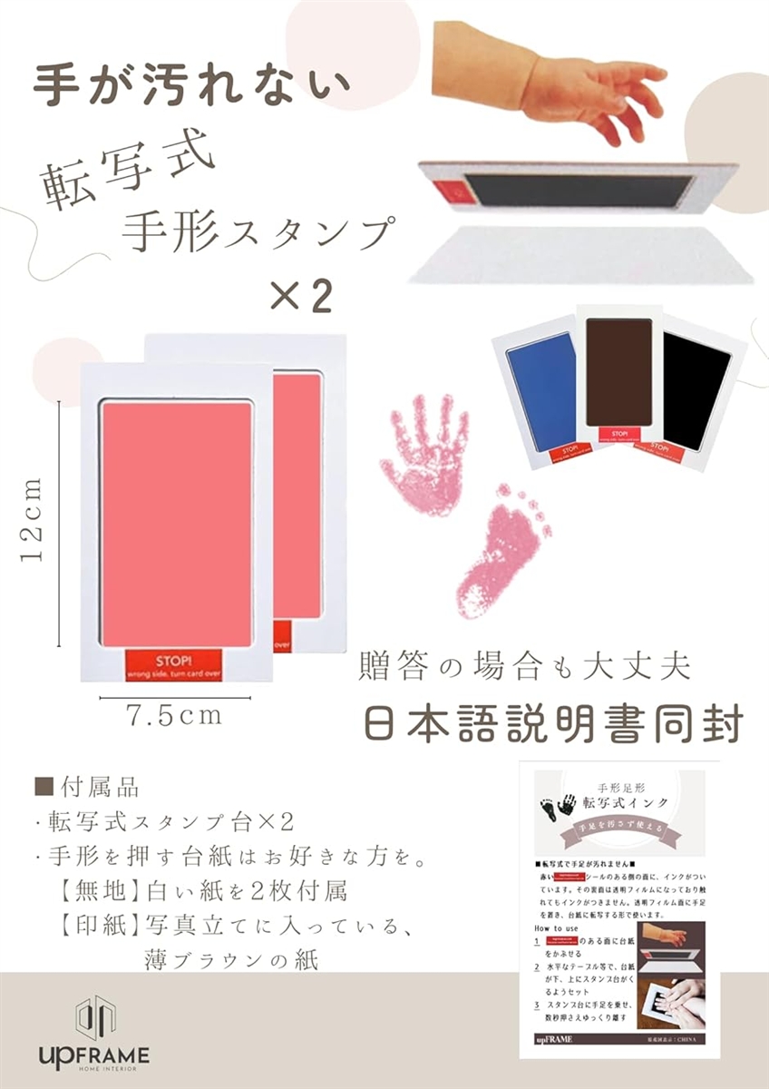 かわいい。手形足形スタンプ とフォトフレームのセット: 赤ちゃんの手形や足形を記念に残せます。
