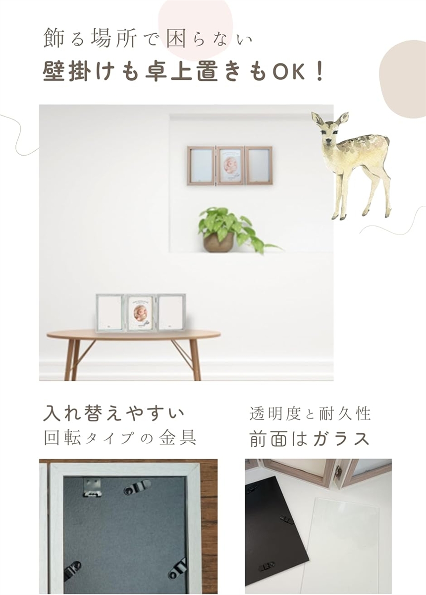 置き掛け兼用ですので、飾る場所に困りません おしゃれなベビーフレーム です。
