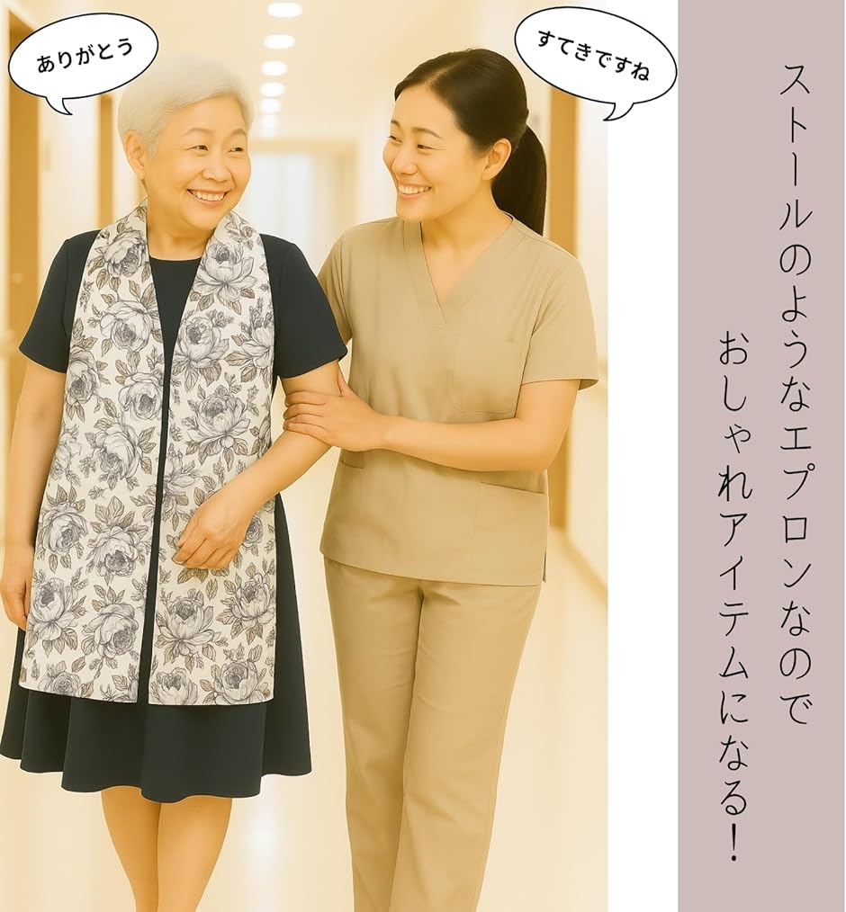 「高齢者向け 食事用エプロン ボタン付き おしゃれな外出・介護用」 高齢者の方や介護が必要な方に向けた、機能的でおしゃれな食事用エプロンです。
