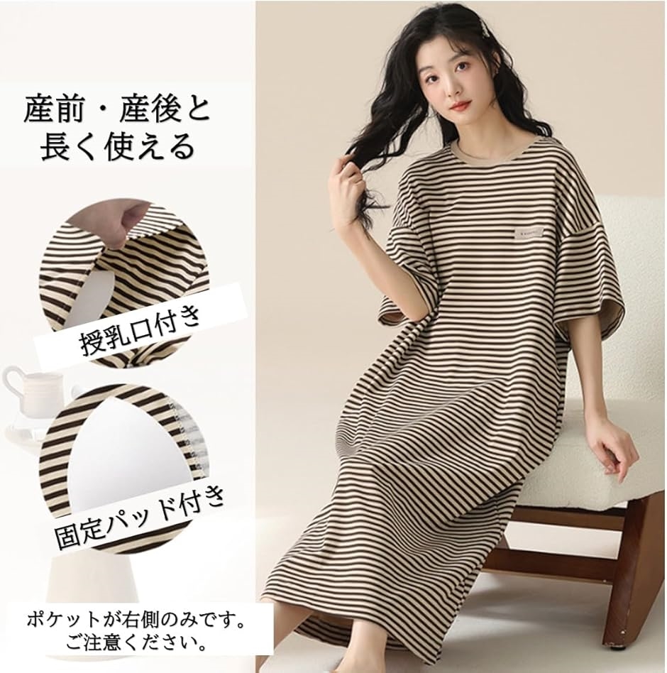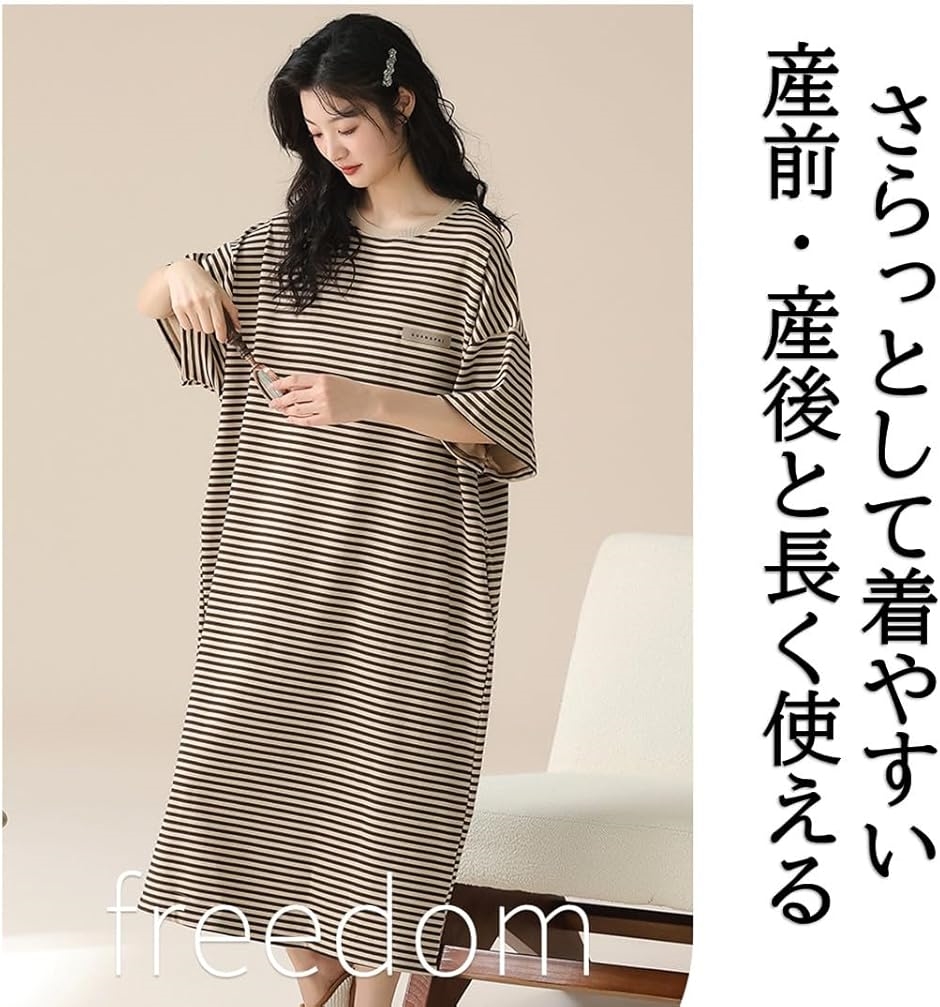 | 商品名 | マタニティ パジャマ 授乳口 半袖 ワンピース ルームウェア 産前 産後 ボーダー |