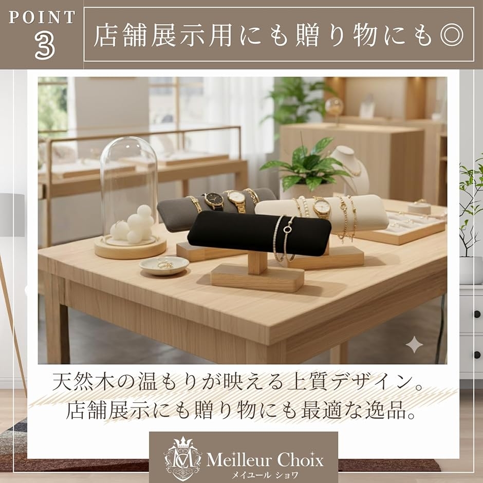 「店舗展示用にも贈り物にも」 洗練されたデザインと天然木の温もりは、店舗ディスプレイや撮影用としても大活躍し、男性へのプレゼントにも喜ばれるアイテムです。