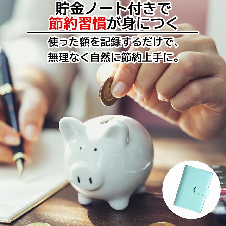 「貯金ノートで無理なく節約」 日々の支出や貯金額を記録できるノート付き。