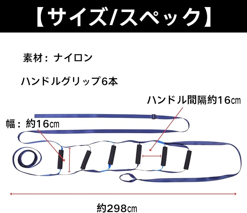 「サイズ/スペック」素材:ナイロン、全長:約298cm、幅:約16cm、ハンドル間隔約16cm、ハンドルグリップ6本