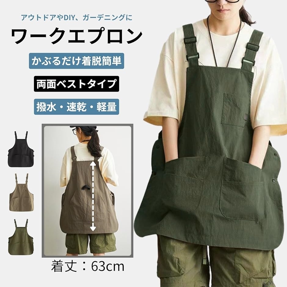 | 商品名 | アウトドア エプロン ワークエプロン ショート丈 両面 キャンプ 作業 DIY ガーデニング 撥水 速乾 軽量 A |