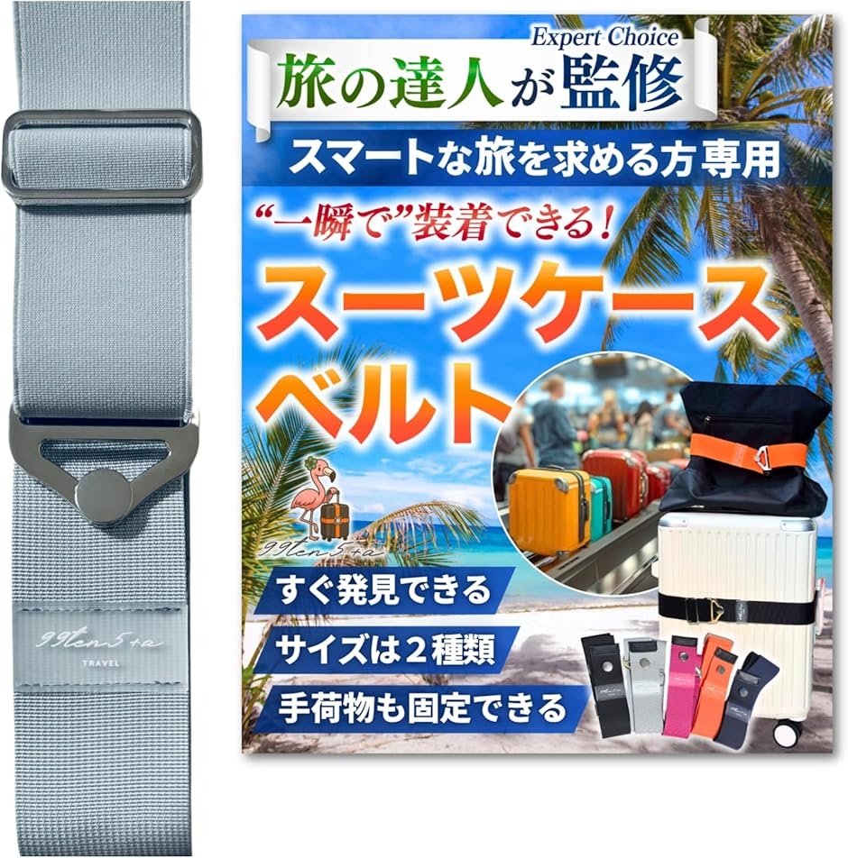 1、「専門家が監修」 ・スマートな旅を求める方に使って欲しい「一瞬で装着できるスーツケースベルト」 ・ベルトを伸ばしてフックを掛ければ装着完了 ・旅先の貴重な時間をより有意義に