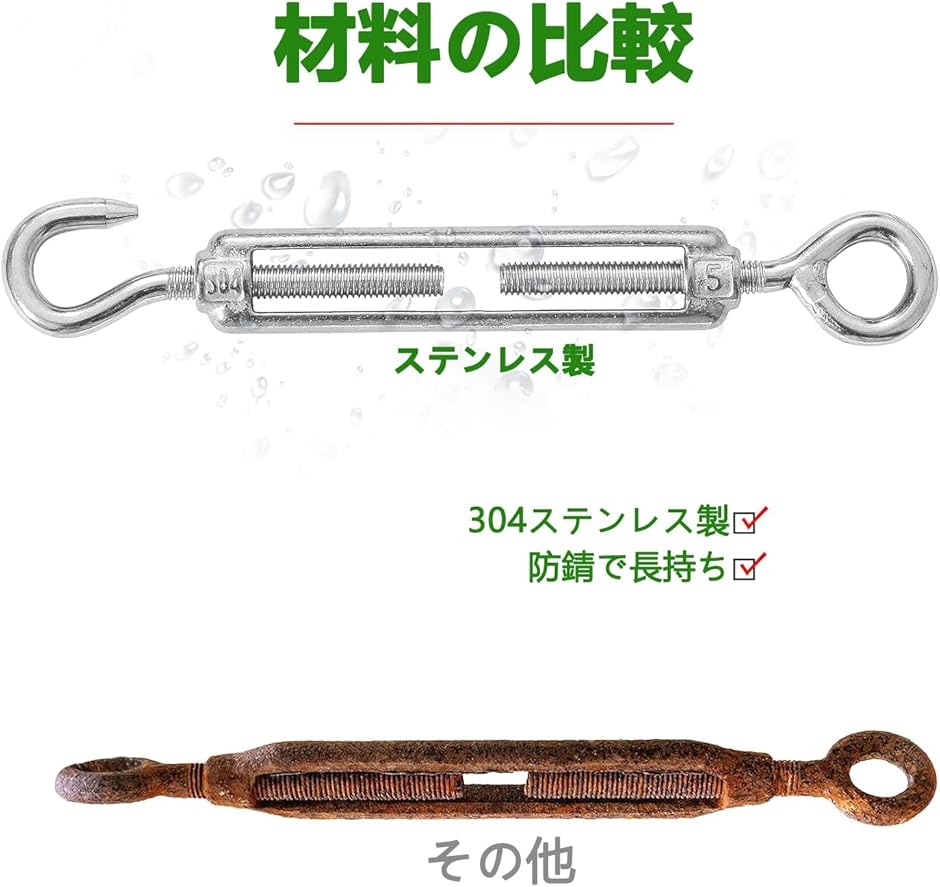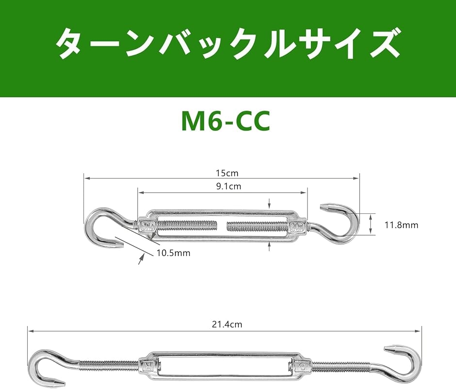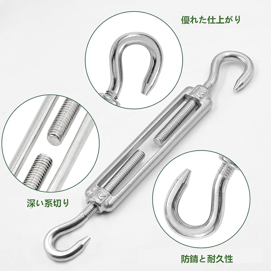 | 商品名 | 同舟 ターンバックル 6個セット ステンレス ワイヤーパーツ フック Turnbuckle CC型 貼り具合調整 ワイヤーロープ 固定 SUS304 防錆 耐久性 構造物補強 |