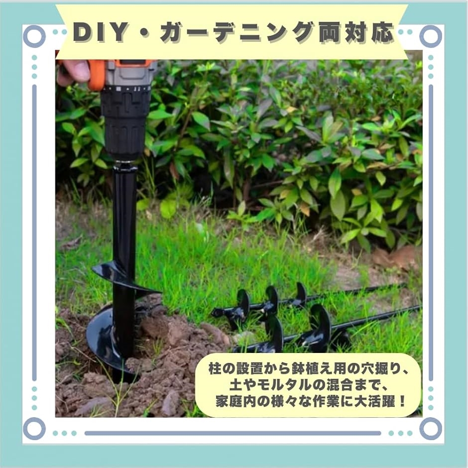 「DIY・ガーデニング両対応」柱の設置から鉢植え用の穴掘り、土やモルタルの混合まで、家庭内の様々な作業に大活躍。