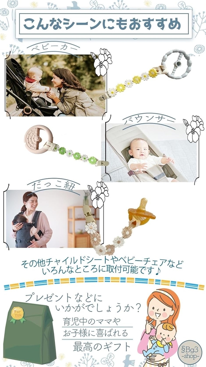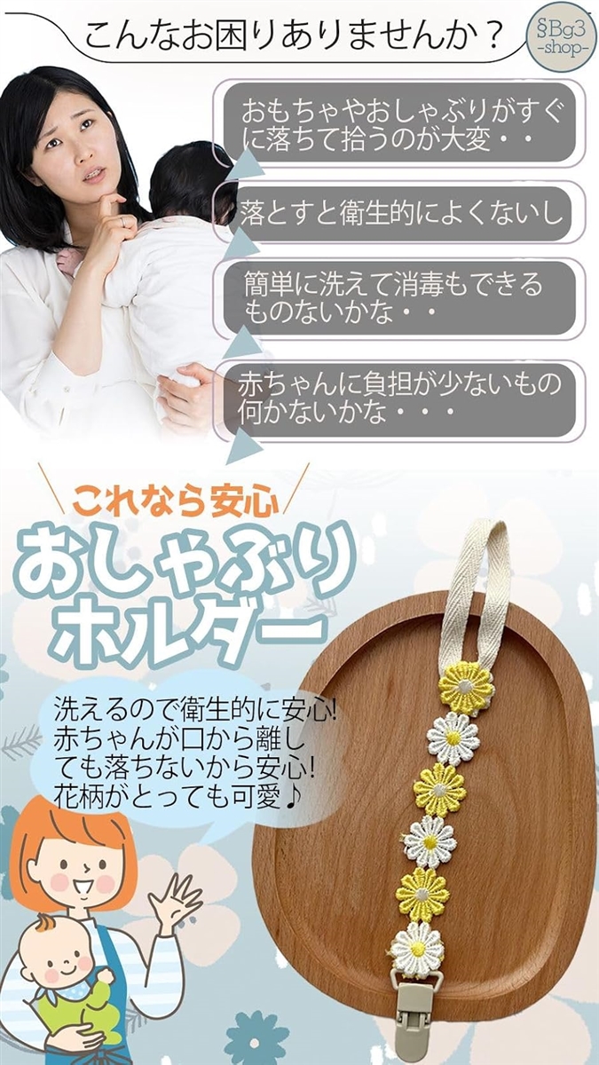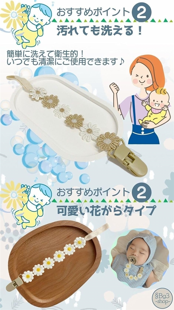 | 商品名 | おしゃぶりホルダー 2本セット おしゃぶりストラップ クリップ デイジー |
