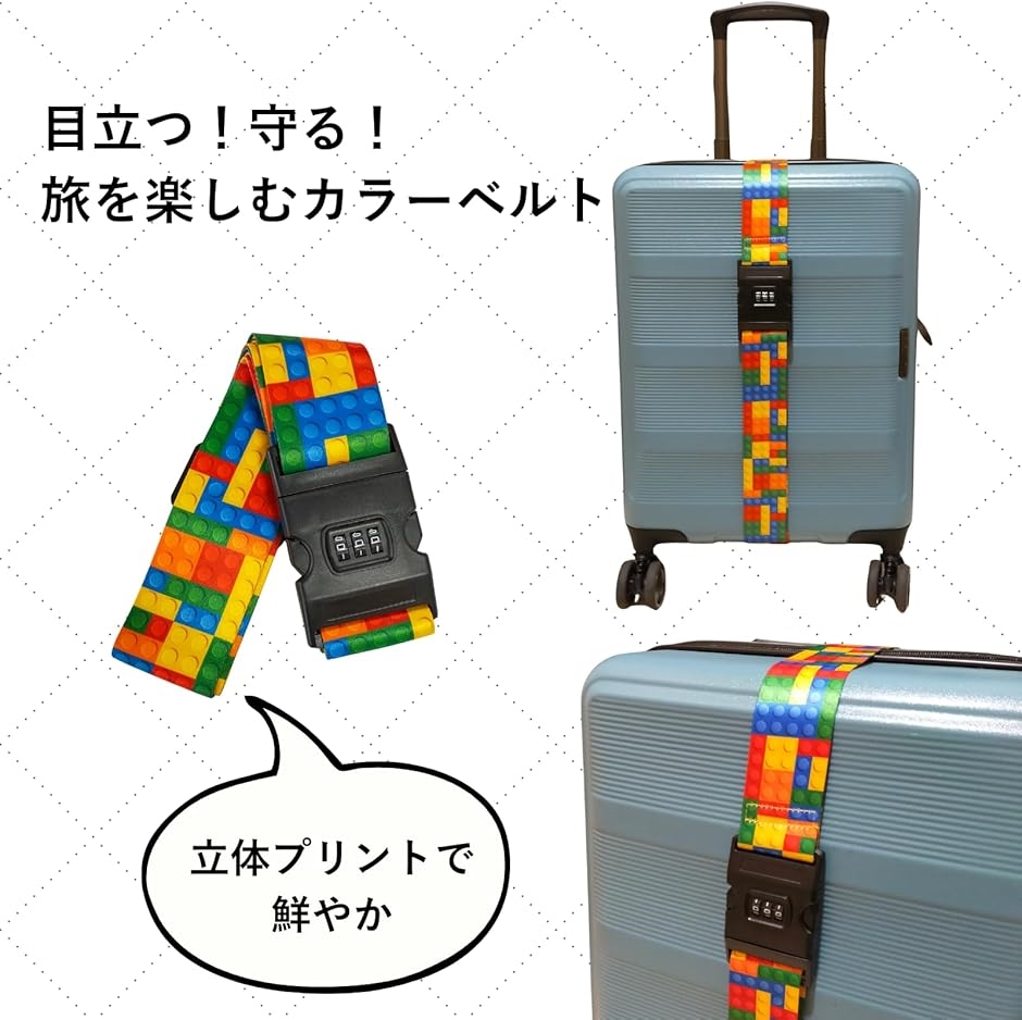 「目立つ。スーツケースベルト」スーツケースが不意に開くのを防止するスーツケースベルト。