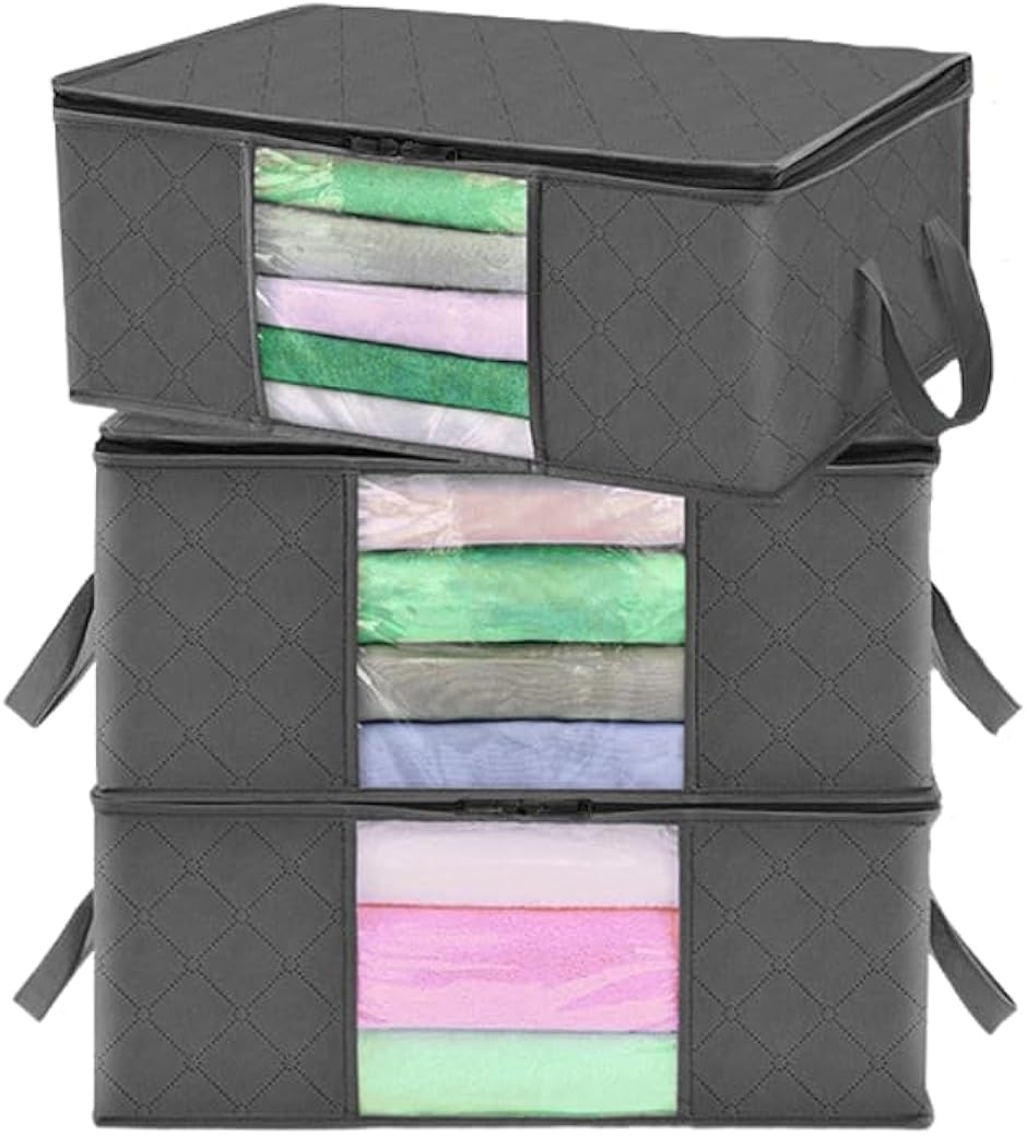 | 商品名 | 大容量・3個セット 衣類収納ケース 不織布製 窓付き・取っ手付き 通気性 衣替え 布団収納にも |