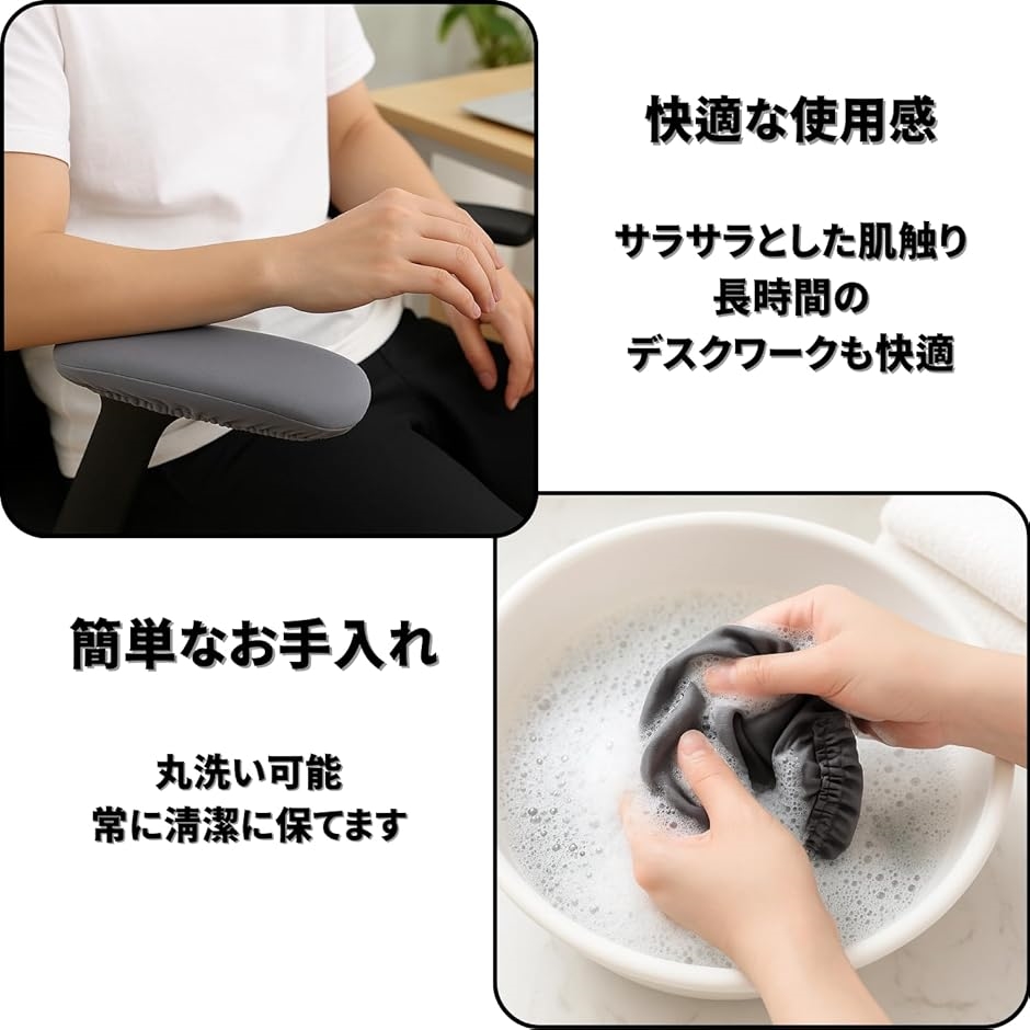 「快適な使用感」このアームレストカバーは、サラサラとした肌触りで、長時間のデスクワークでも快適に過ごせます。