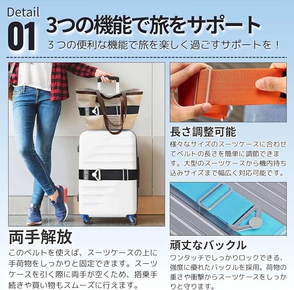 | 商品名 | スーツケースベルト キャリーケース ストッパー 後付け スーツケースバンド 金属留め具 荷物 固定ベルト 海外旅行 固定バンド 便利グッズ |
