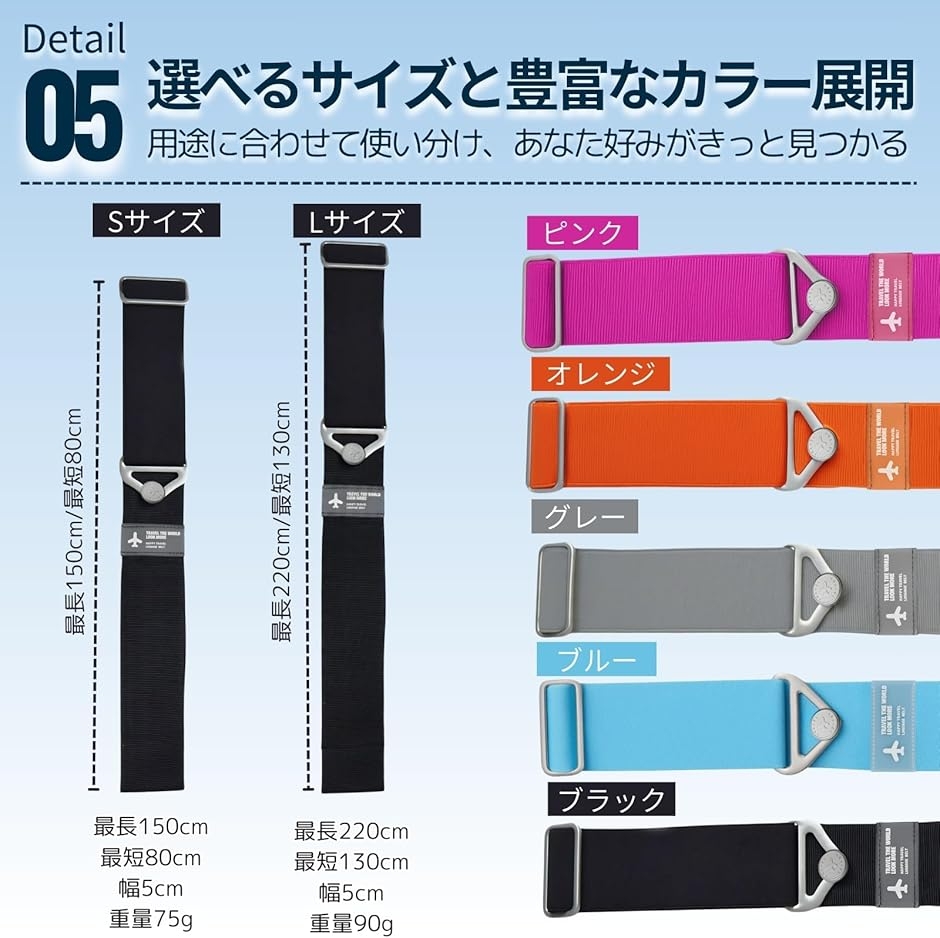 大小さまざまなスーツケースに対応でき、旅行や出張の荷物管理をより快適にサポートします。