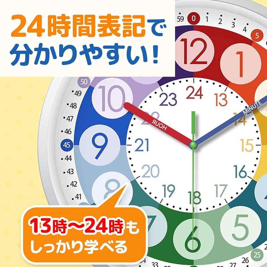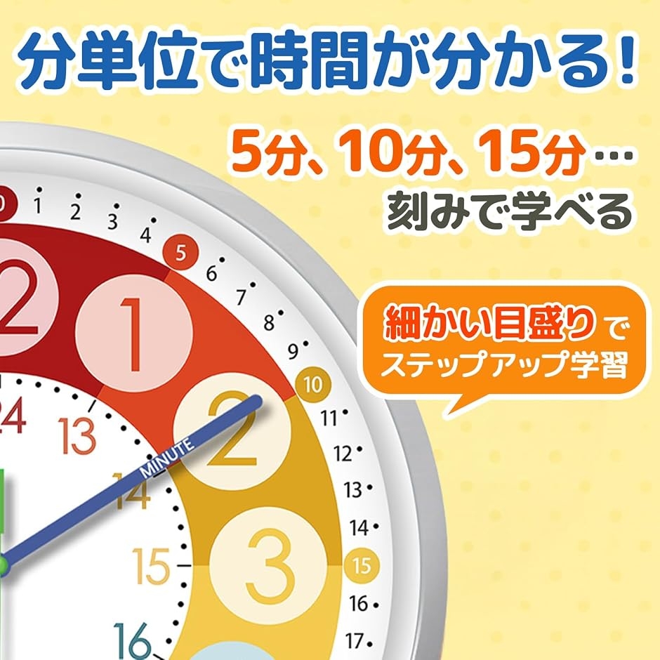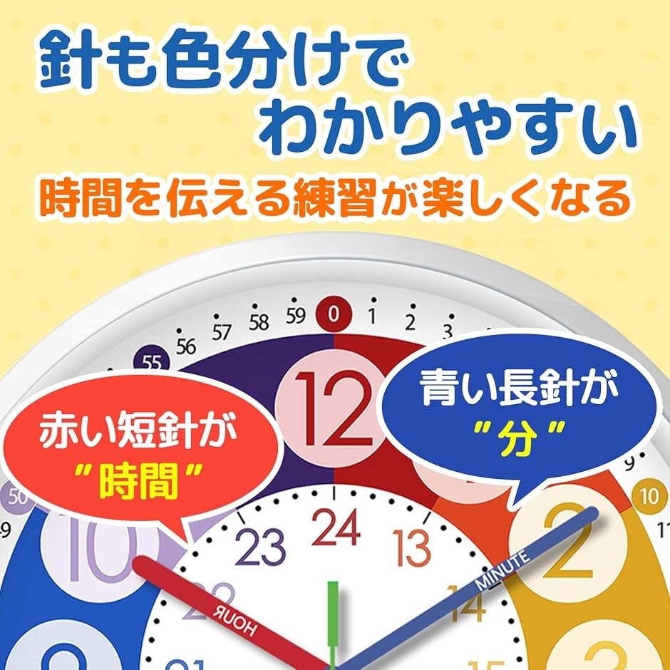 | 商品名 | 知育時計 壁掛け 子供用 色分け 学習時計 時間学習 算数教材 小学生 勉強 知育 |