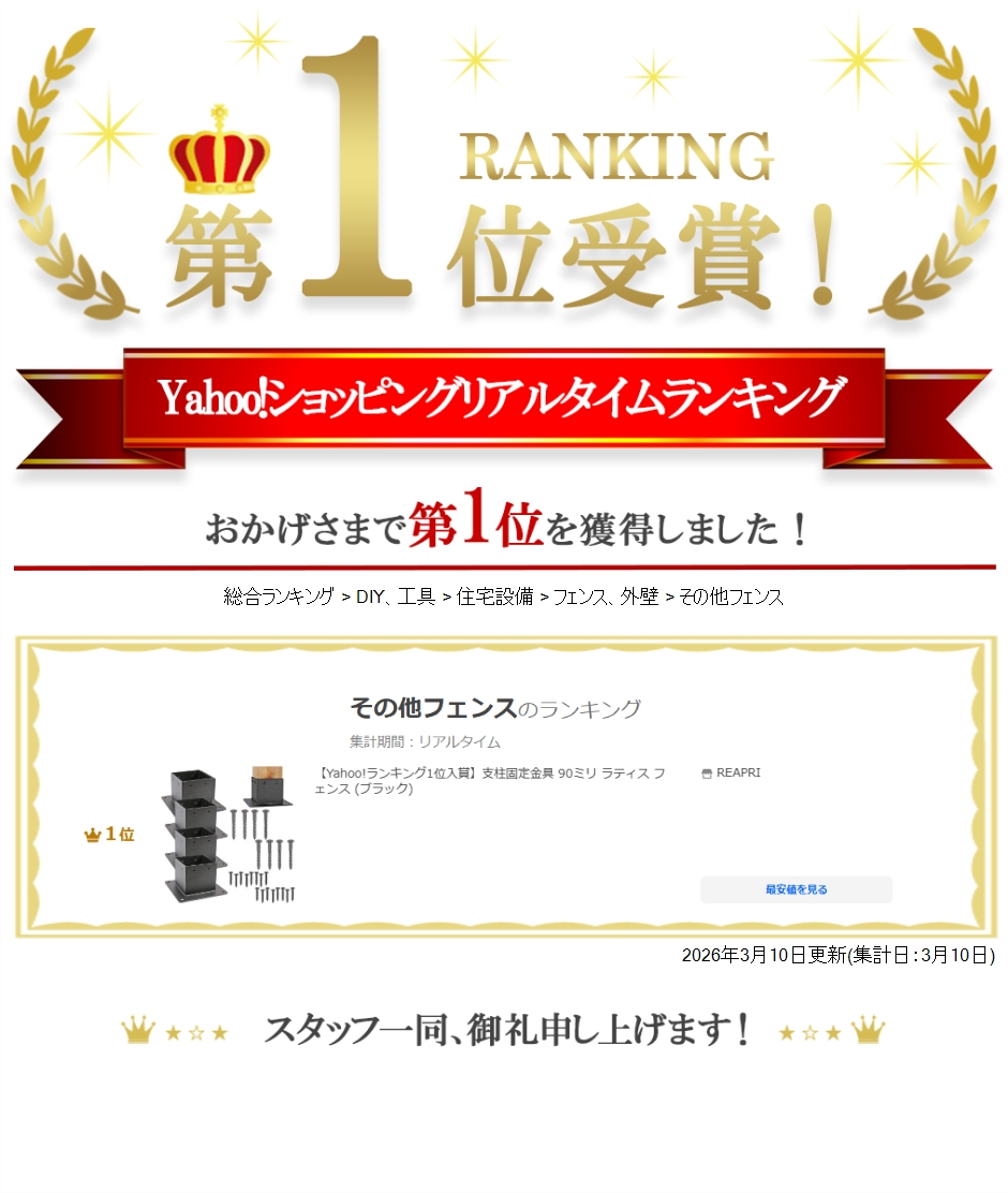 付属のビスで固定するだけで、誰でも簡単かつ正確にラティスやフェンスを設置でき、DIYのハードルを大きく下げます。