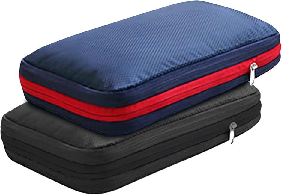 「ファスナーを閉めるだけで簡単圧縮」 FLIEGERの圧縮トラベルポーチは、畳んだ衣類をスッキリ簡単に最大50%圧縮できます。