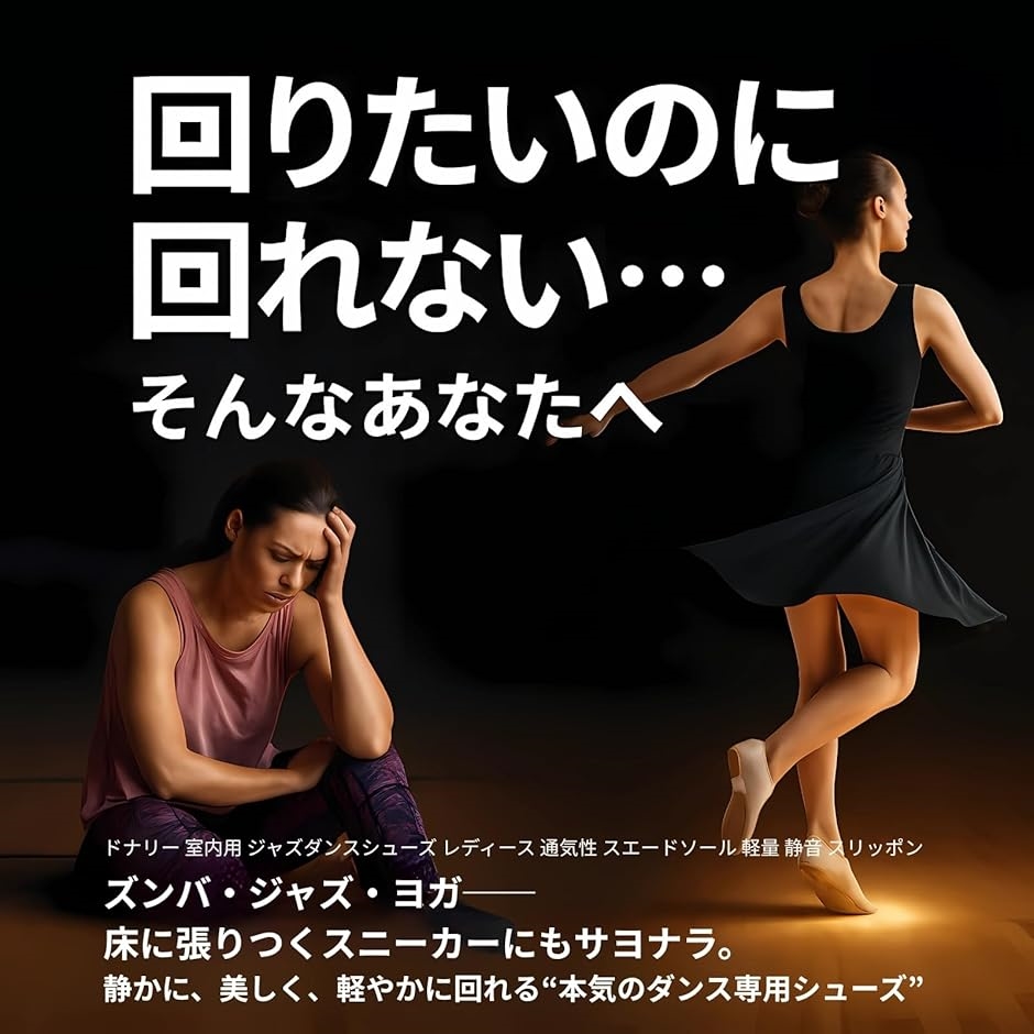 「ズンバ・ジャズダンス・モダンダンス…すべてに応える設計」モダンなデザインと、フィットネスダンスシューズに求められる性能を兼ね備え、ジャズやズンバ、リズム体操、ヨガなど幅広い運動に対応。
