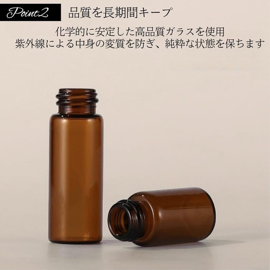 「毎日の美容、もっと手軽に」スポイト付きの高品質ガラス遮光瓶で、アロマオイルや化粧品の一滴一滴を大切に保管。