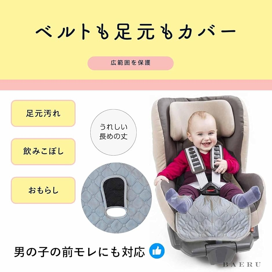 「座面をしっかりガード」チャイルドシートはお手入れが難しいので、できれば失敗したくない・・そんな方に。オムツ漏れ、おしっこ、ジュース、泥汚れ等のあらゆる汚れから座面を守ります。