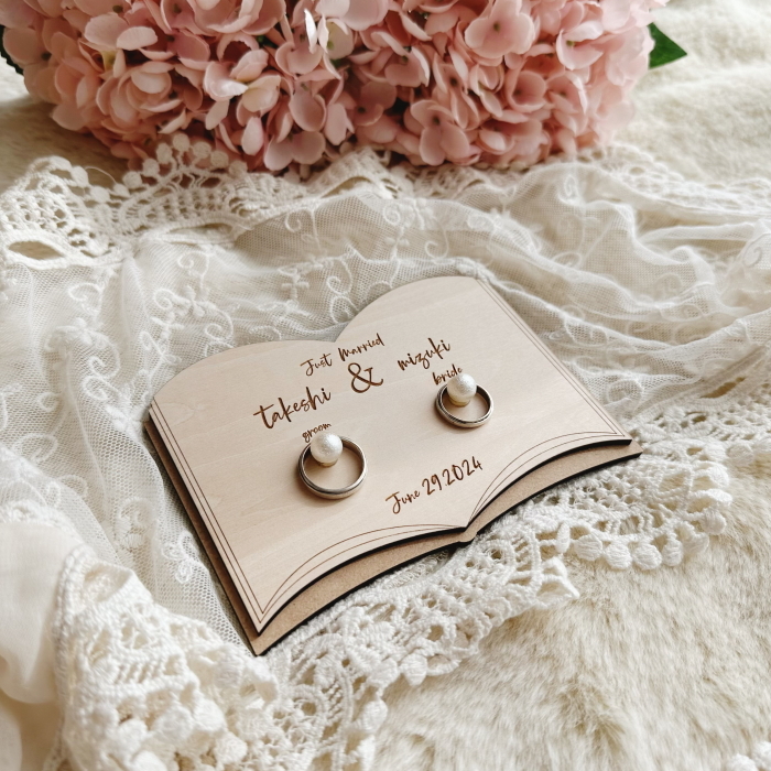 リングピロー木製BOOK 結婚指輪 リングホルダー ブライダル 結婚式 指輪 Wedding かわいい おしゃれ ペアリング 本 洋書 ナチュラル 結婚準備