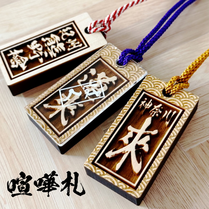 【喧嘩札】迫力のある1cm極厚!超深堀 国産紀州熊野ひのき使用 お祭り 夏 名前札 木札 名入れ 江戸打紐 和柄 オーダー プレゼント 男性 女性 和柄 千社札