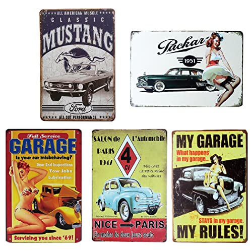ブリキ 看板 メタルプレート アメリカン レトロ 雑貨飾り メタル 雑貨 壁飾り アンティーク レトロ 壁飾 雑貨 ヴィンテージ風 (車 5枚セット)
