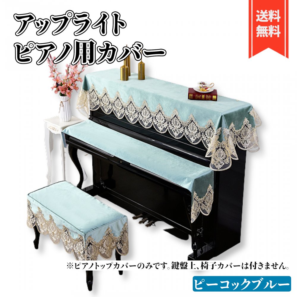 ピアノトップカバー アップライト 刺繍 上品 レース柄 ベロア 電子ピアノ デジタルピアノ 防塵カバー (トップカバー_ピーコックブルー)