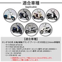 | 商品の説明 | 説明 【商品内容】プーリー 外径89mm プーリーボス 長さ38mm 外径20mm 内径12mm/14mm(どちらか選択ください) ランププレート14mm スライドピース付き ウエイトローラー 5g×3個 / 7g×3個 / 9g×3個 クラッチ強化スプリング3個 【高品質なプーリー・ウエイトローラー】車種に合わせて設計された高品質なプーリーと、ベストバランスなウエイトローラーは愛車本来のパワーを取り戻します。 【交換時期】スムーズな加速ができなくなった、最高速度が出なくなったと感じる場合、プーリーやウエイトローターが摩耗している事が原因かもしれません。また、ウェイトローラーの交換時期の目安として、走行距離でいうと1~2万キロですが、走り方によっては5,000キロ程度で交換する場合もあります。 【加速と最高速のバランス調整】3パターンのウェイトローラーにより、自分好みの加速と最高速のバランス設定が可能! 【適合車種】ホンダ DIO系 太軸系クランク プーリーボス内径14mm車種用 ライブDIOZX AF34/35 ライブDIO SR DIO BAJA スーパーDIO / DIOチェスタ AF27 / エンジン番号:AF18E-2000001~ スーパーDIO SR ZX AF28 / エンジン番号:AF18E-2000001~ ジョーカー50 リード50 88-92 ジョルノ AF24 G'50 AF23 ・タクト AF24/AF30/AF31 ジュリオ50 AF52 etc・・・ ※記載車両にはクランク軸12mmと14mmが存在する場合がございます。ご確認の上ご購入お願いいたします。 |