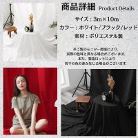 主な仕様【大判3m×10m 背景布】 撮影や装飾に使える、たっぷりサイズの3m×10m背景布。 広いスペースをしっかりカバーでき、人物撮影・商品撮影・ステージ装飾など、プロからアマチュアまで幅広く活躍します。【ポリエステル素材】 シワになりにくく、軽くて丈夫なポリエステル生地を採用。通気性があり、アイロンやスチームでのしわ伸ばしも簡単。 洗濯可能なので汚れても安心。【多用途で使える】 写真・動画撮影/ライブ配信/イベント装飾/舞台背景/展示会/パーティー/教室の装飾/裁縫用の生地など、使い方は自由自在。【仕様】 ・サイズ:約3m × 10m ・素材:ポリエステル ・カラー:ホワイト/ブラック/レッド【ご注意】 ※折りたたんだ状態でのお届けとなります。使用前にアイロンまたはスチーマーでシワを伸ばしてください。 ※撮影環境やモニターにより、実際の色味と多少異なる場合があります。