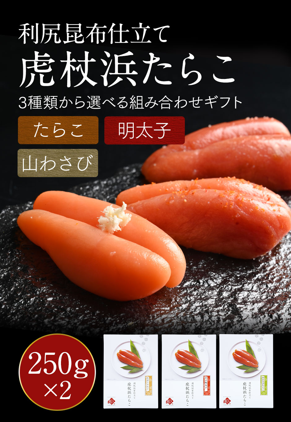 虎杖浜たらこ 一本子 2種食べ比べ 化粧箱入り 250g 9-10本 島の人 北海道 お取り寄せ お土産 食べ物 ギフト 明太子