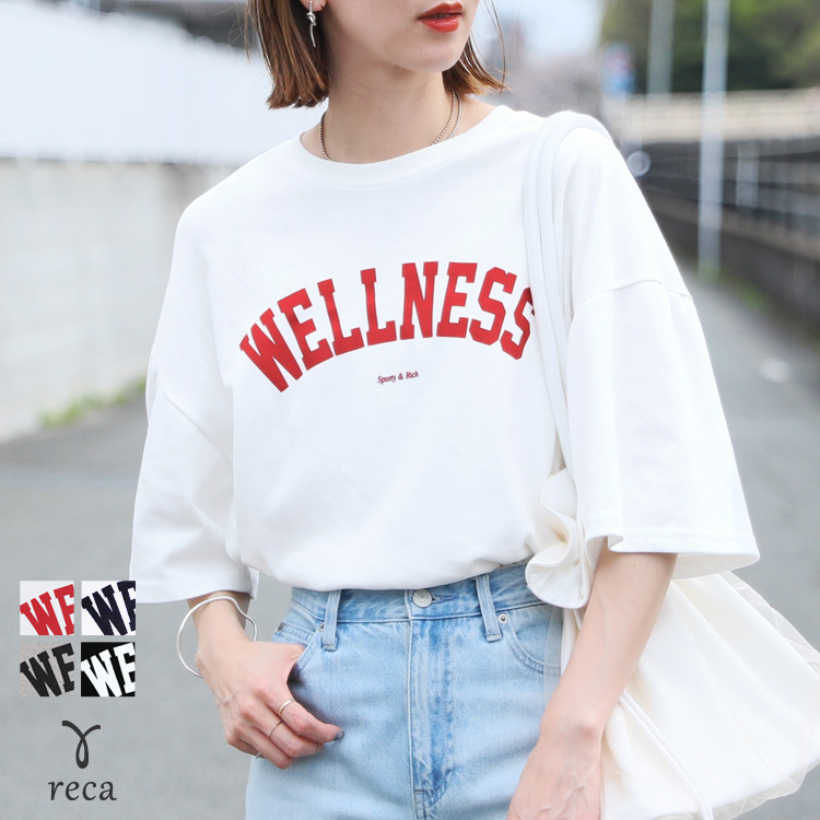レディース トップス ロゴT Tシャツ ロゴTシャツ ショート丈 ミディ丈 ミドル丈 プルオーバー プリントロゴ 着回し 半袖 五分袖 ゆったり カジュアル 丸首 キレイめ シンプル コットン 綿 夏 大人女子 大人カジュアル 30代ファッション 30代コーデ ホワイト ブラック グレー 白 黒 灰