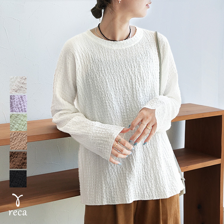 レディース トップス シンプル 透け感 トレンド 凸凹 クルーネック 重ね着 レイヤード 着回し 薄手 伸縮性 ストレッチ 柔らかい 長袖 キレイめ 春服 無地 シンプル プルオーバー 大人女子 30代ファッション 30代コーデ 40代ファッション 40代コーデ ブラック 黒 ホワイト 白 グリーン 緑 女性 インナー