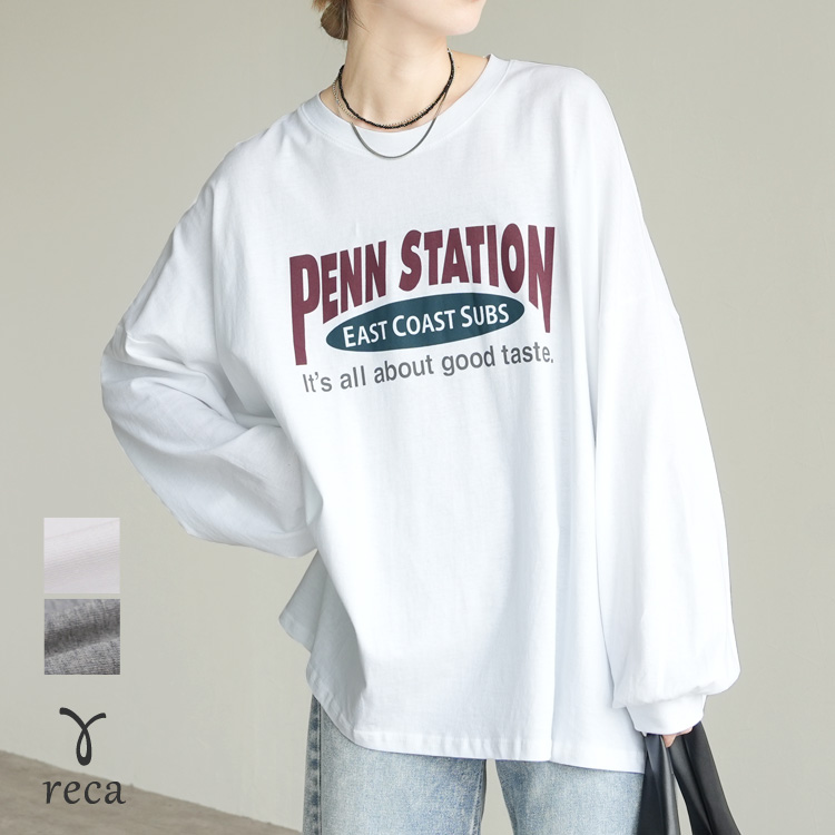 レディース トップス プルオーバー Tシャツ ロンT ロゴT ロゴ プリントロゴ オーバーサイズ ビッグサイズ メンズライク ヴィンテージ 秋 長袖 クルーネック 丸首 カジュアル シンプル 大人女子 30代ファッション 30代コーデ プリント オートミール ホワイト 白 ブラック 黒 グレー